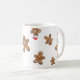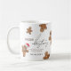 Pão de Gengibre Festivo Bonito, Pão de Café. Design apresenta um clássico fundo branco, decorado com pão-de-açúcar e biscoitos-gengibre, de cor aquosa, com alguns vestindo um chapéu de Papai Noel vermelho. O doce ditado "Gingerbird kisses and Holiday Wish" e o nome da família.