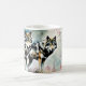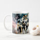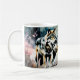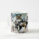 Uma pintura aquosa de duas cinzas de lobo na varanda.