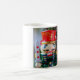 Um par de loucos alegres com uma pequena árvore de Natal ao fundo para tornar o seu cacau quente mais festivo