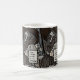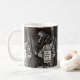 Don Quixote Wenound Mug: O Primeiro Passo é Sonhar. Imagem digital em estilo Woodcut em preto e branco.