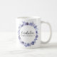 Uma elegante borda floral de rosas roxas de aquarelas molda esta caneca casamento no inverno chic com uma bela forma circular junto com flores violetas e folhas botânicas lavandas. Um presente perfeito para a sua festa ou madrinha de casamento.