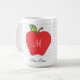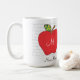 Esta caneca de café da maçã do monograma é o presente perfeito dos professores a começar ou terminar o ano escolar. Personalize simplesmente com inicial e nome do professor. Cartões de nota, artigos de papelaria, etiquetas e caneca de café de harmonização.