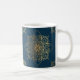 Um padrão de belos mandalas de ouro repetidas em uma cor damasco ornamentado. O ouro é brilhante para imitar a folha de ouro real. Os mandalas são projetados com trabalho intrincado e desenhado à mão e colocados sobre fundo azul marinho profundo.