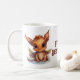 Uma caneca de cerâmica branca com gráficos animados de desenho animado de dois dragões bebês de asa marrom. O texto marrom lê Future Destroyer. ideia de presente de excelente para qualquer fã de dragões de fantasia.