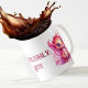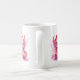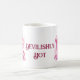 Uma caneca de cerâmica branca com gráficos animados de desenho animado de dois dragões-bebê cor-de-coroa-rosa. O texto de Maroon diz Devilishly Hot. ideia de presente de excelente para qualquer fã de dragões de fantasia.