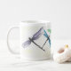 Esta é uma caneca de café ou chá com minhas libélulas a aquarela impressas nela inspiradas pelas muitas libélulas que visitam nossa fazenda todo ano.