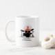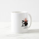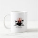 A mug with an illustration of a silhouette of a drum kit, a drummer with his hands highlighted, and a striped red-brown sun in the background. Perfect for a drummer, a drums teacher or lovers of music!