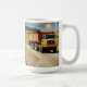 Esta caneca apresenta um caminhão de lixo e, por existirem duas imagens, funcionará para pessoas de direita ou de esquerda.