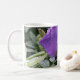 Snowy white dusting on beautiful blooming violets from the first snow of the season!