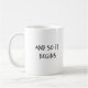 "E Então Começa" é um ditado sarcástico, humorístico a todos que se sentem assim. Letra preta. Caneca branca. 11 oz. Frase à direita e à esquerda da caneca.