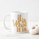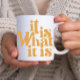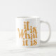 É o que é uma caneca de café, é o que diz ser uma caneca divertida - esta é de cor amarela mostarda.