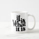 É o que ela é caneca de café, é o que ela está dizendo ser uma caneca divertida com humor.