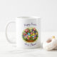 This beautiful 11 oz. mug features a festive Easter design with a spring basket full of colorful Easter eggs, vibrant flowers, and delicate green leaves. All text on the design is customizable, allowing you to add your own personal touch—whether it’s a holiday greeting like “Happy Easter” or a custom name or message. Perfect for celebrating Easter, this seasonal mug makes a delightful gift for friends and family, or a charming addition to your own holiday decor. Ideal for Easter morning coffee or tea, this mug is a wonderful way to bring a touch of spring into your daily routine. It also makes a thoughtful gift for Easter celebrations, holiday gatherings, or springtime events. Whether you’re looking for Easter gifts, spring home decor, or just a joyful addition to your kitchenware, this mug is a perfect choice for the season.