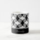 Aproveite seu café matinal com esta design de caneca alarmante com espirais de ebony contra fundo de marfim. O texto personalizável permite alterar fontes, alterar cores e tamanhos de texto conforme desejar. Personalize você mesmo ou faça um presente de excelente.