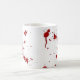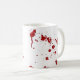 Splatters vermelhos escuro e gotas do sangue da falsificação parva e cómico do falso no fundo branco torrado. Faz um presente engraçado da mordaça, peça de um traje do Dia das Bruxas, ou para fazer apenas pessoas olhar duas vezes.