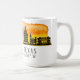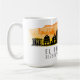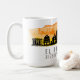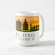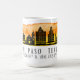 A caneca do café apresenta a silhueta do horizonte da cidade de El Paso Texas com a cor d'água do pôr do sol e as coordenadas do mapa de latitude e longitude