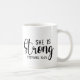 Caneca: Proverbs 31:25 Ela é forte se refere à passagem NKJV Força e honra são suas roupas; Ela vai se alegrar a tempo de vir.