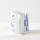 Na moda CHRISTIAN PÁSCOA 'HE IS RISEN' Coffee Mug com texto PERSONALIZÁVEL. Projetado no popular efeito padrão controlado com matizes azuis cruzados e dourados, e incorporando estética de chinoiserie tendências. PERSONALIZE esta Páscoa cristã com o seu nome ou a sua própria redação. Presentes correspondentes disponíveis. Versão 15oz listada separadamente.