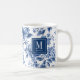 A beautiful blue and white monogram with a floral english garden pattern decorate this mug. Personalize it with your monogram initial. Makes a beautiful birthday or Mother's Day gift. Designed for you by Blackberry Boulevard.