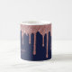 Caneca Personalizada Elegante Azul Marinho e Rosa Dourado Brilho Gotas. Você está transbordando luxo e deve mostrar isso! Fácil de personalizar com seu nome e detalhes. Perfeito para o seu estilo de luxo.