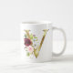 Caneca De Café Elegante Letra V Dourada Flores Rosadas Monograma