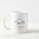 Esta caneca de casamento minimalista apresenta Sra. em delicado script com um sobrenome personalizado em bela caligrafia fluida, uma data de casamento estabelecida e um doce acento de coração rosa. O layout limpo e arejado em um fundo branco crocante deixa a tipografia elegante brilhar. O sobrenome e a data são totalmente editáveis para um presente personalizado. Um presente adorável para a noiva, recém-casada, chá de noiva ou celebração de noivado.