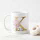 Caneca De Café Elegante rosa Dourado Monograma Floral Letra K