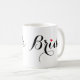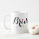 Bela, elegante tipografia preta em branco script, coração vermelho, elegante, clássico chá café leite caneca, para a noiva para chá de panela, despedida de solteira, casamento.