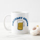 Uma caneca de formação de espuma de cerveja e de texto azul que lê do "elogios aniversário" em t-shirt, em cartões, em botões, em canecas, e em mais do aniversário.