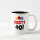 Três balões das cores preliminares e pretos e texto que lê "40" resoluto em cartões de aniversário de 40 anos cómicos, t-shirt, canecas, e mais.