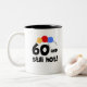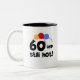 Balões das cores preliminares e texto preto que lê "60 e ainda quente!" em 60th t-shirt do aniversário, em canecas, em botões, em cartões, e na outra engrenagem do aniversário!