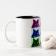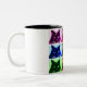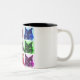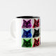 colagem multi-colorida estilo do gato na caneca cerâmica