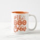 Esta caneca de café divertida apresenta a imagem de texto "A Tripulação do Boo" em brilho laranja. Adicione seu nome ao lado para personalizar. Perfeito para o feriado.