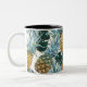 Caneca De Café Em Dois Tons Ananás Tropicais e Folhas Exóticas