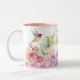 Caneca De Café Em Dois Tons Aquarela Flores de Pássaros