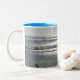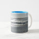 Uma caneca de dois tons com uma foto do nascer do sol da praia.