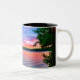 Caneca De Café Em Dois Tons bebida, pôr do sol sobre o lago,