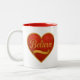 Beautiful red heart outlined in gold with the word "Believe" on a white and red coffee mug, on the other side is a quote from Acts 16.31 which can be changed to your favorite quote on believing. Thoughtful gift idea for a Christian friend Pastor, teacher or new "believer".