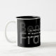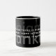Famosa citação de B. Franklin: "No vinho há sabedoria, na cerveja há Liberdade, na água há bactérias." design na caneca de dois tons com fundo preto.