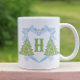 Caneca De Café Em Dois Tons Blue Chinoiserie Árvore Natal Monograma Crest
