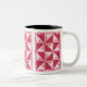 Uma linda caneca de giro tem um padrão de colcha cor-de-rosa com bolinhas cor-de-rosa e padrão floral cor-de-rosa branca. Isso seria um presente bem pensado.
