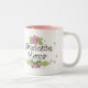 Impressionante caneca de café Mema com flores rosa e bolinhas dispersas cor-de-rosa com uma fonte fofa. Visite nosso compro para ver este design em uma variedade de nomes de avó.