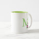 Caneca De Café Em Dois Tons Bonito monograma verde com flores de maçã