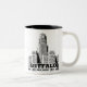 Caneca simples e atrativa que indica um golpe, imagem preto e branco de alto contraste da câmara municipal do búfalo. Inteiramente customizável.