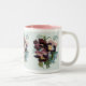 Um belo pequeno poste de flores vitorianas sobre fundo azul macio. Este buquê de safra contém Pansies e Nots de Esquecimento Azul. Disponível em presentes, correio, cartões e roupa.
