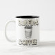 Bold cream-on-black design reading 'But First Coffee' with a rough cup silhouette, ideal for mornings, cafe lovers, and casual streetwear.