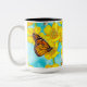 Caneca De Café Em Dois Tons Buttercups, Abelhas e Borboletas em Nuvens