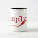 Caneca De Café Em Dois Tons Cabo USB vermelho com texto UNPLUG