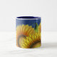 Uma vista de perto dos girassóis decora esta caneca. O desenho é de uma pintura original.