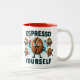 Prepare sua rotina matinal com nossa caneca de café 'Espresso Você Mesmo'! Essa design apresenta um grupo lúdico de grãos animados de café em várias poses, cada uma com uma expressão encantadora. O maior feijão toma palco central, segurando uma deliciosa xícara de espresso, encorajando-o a se expressar com seu fôlego favorito. Com cores vibrantes e um design vivo, esta caneca certamente adiciona um traço de diversão aos seus momentos de café. É perfeito para qualquer um que ama café e um pouco de humor com a sua cafeína matinal. Feita com cerâmica de alta qualidade, esta caneca é segura tanto em micro-ondas quanto em máquinas de lavar louça, garantindo que não seja apenas divertida, mas também funcional. Ideal para uso doméstico ou no escritório, ele faz um presente de excelente para fãs de café, amigos e familiares.